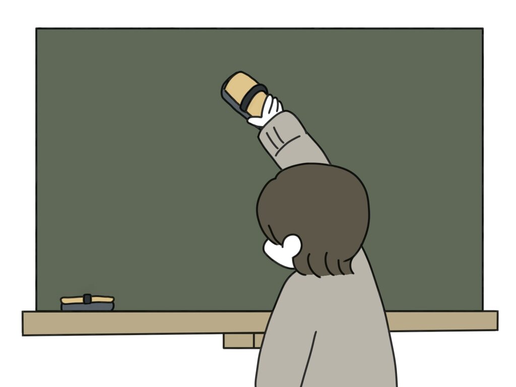 訳)黒板(の文字)は、先生に消され(て、きれいになっ)た。
