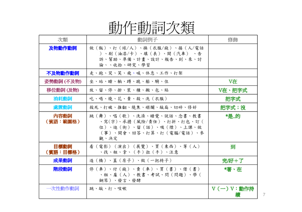 (参考:漢語動詞的句法搭配與教學應用-許秀霞 7ページ)