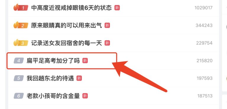 👉️ 本日の「微博热搜」でピックアップしたのは、「扁平足高考加分了吗」です!