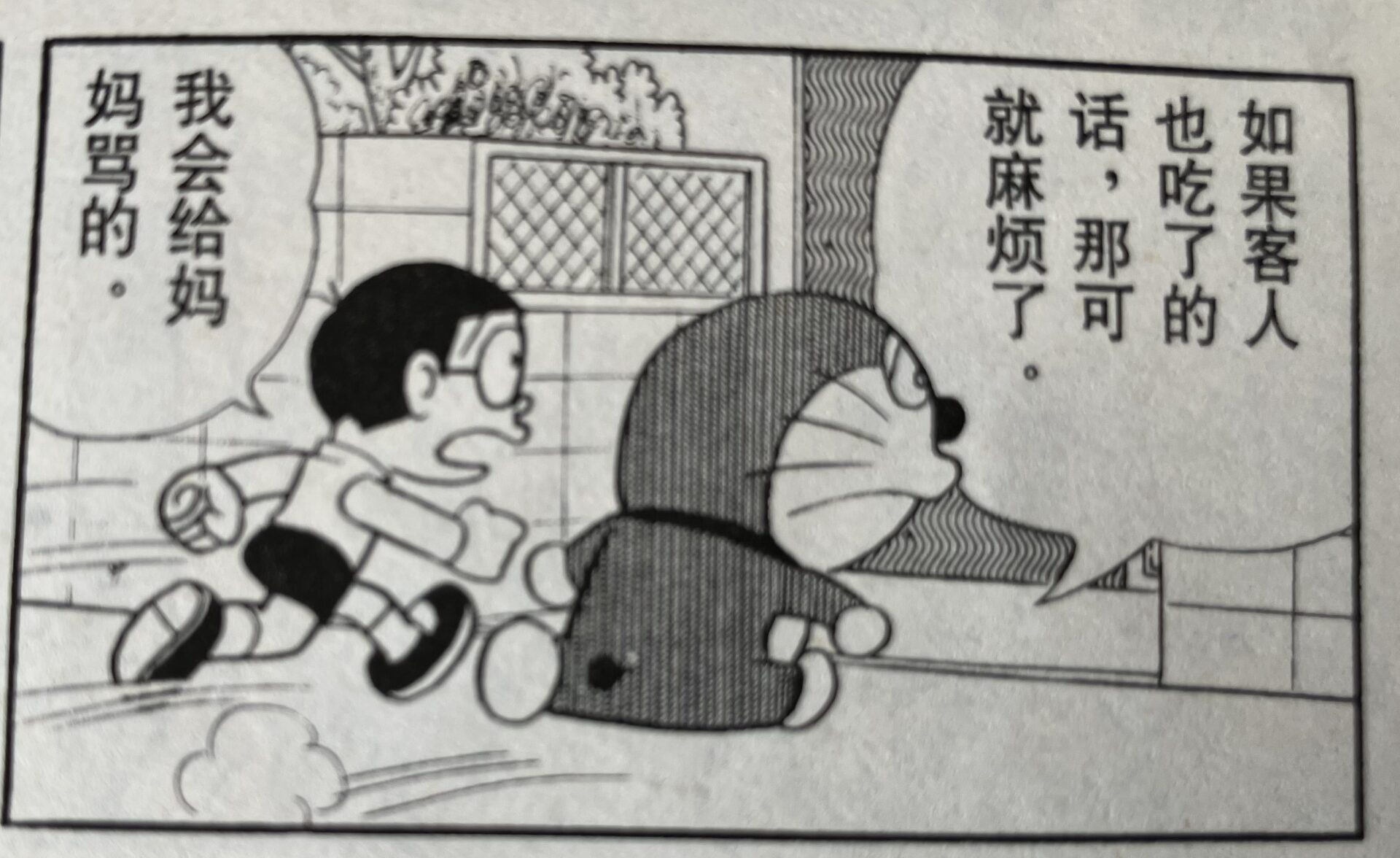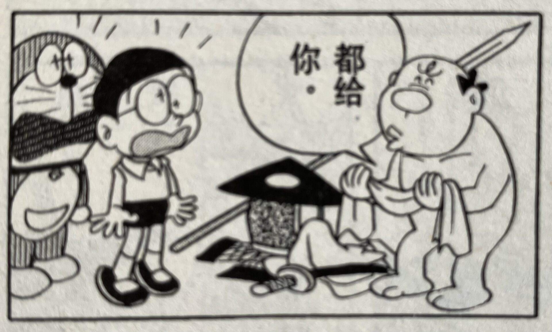 最後に、私が実際に仕事で携わった作品で頻繁に見かける「给我~」の形の命令形をご紹介します。この形は、強い意志や命令を表す使い方で、私が中国語のバトル漫画の翻訳をするようになって、初めて知った使い方でした。『机器猫 哆啦A梦』でも、以下のような場面で使われています。