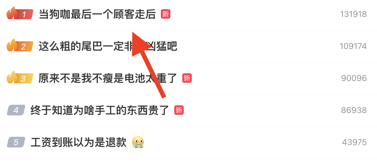 👉 本日の「微博热搜」でピックアップしたのは、“当狗咖最后一个顾客走后”です!
