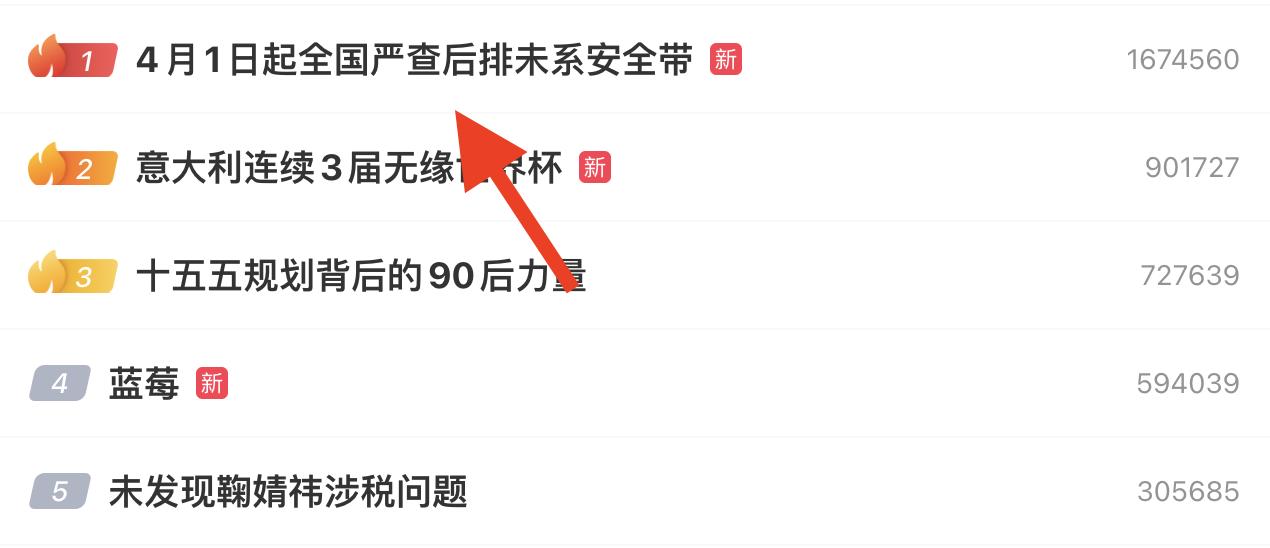 【中国SNSトレンド】“4月1日起全国严查后排未系安全带”の意味は?本日のWeibo热搜🔥を徹底解説👇