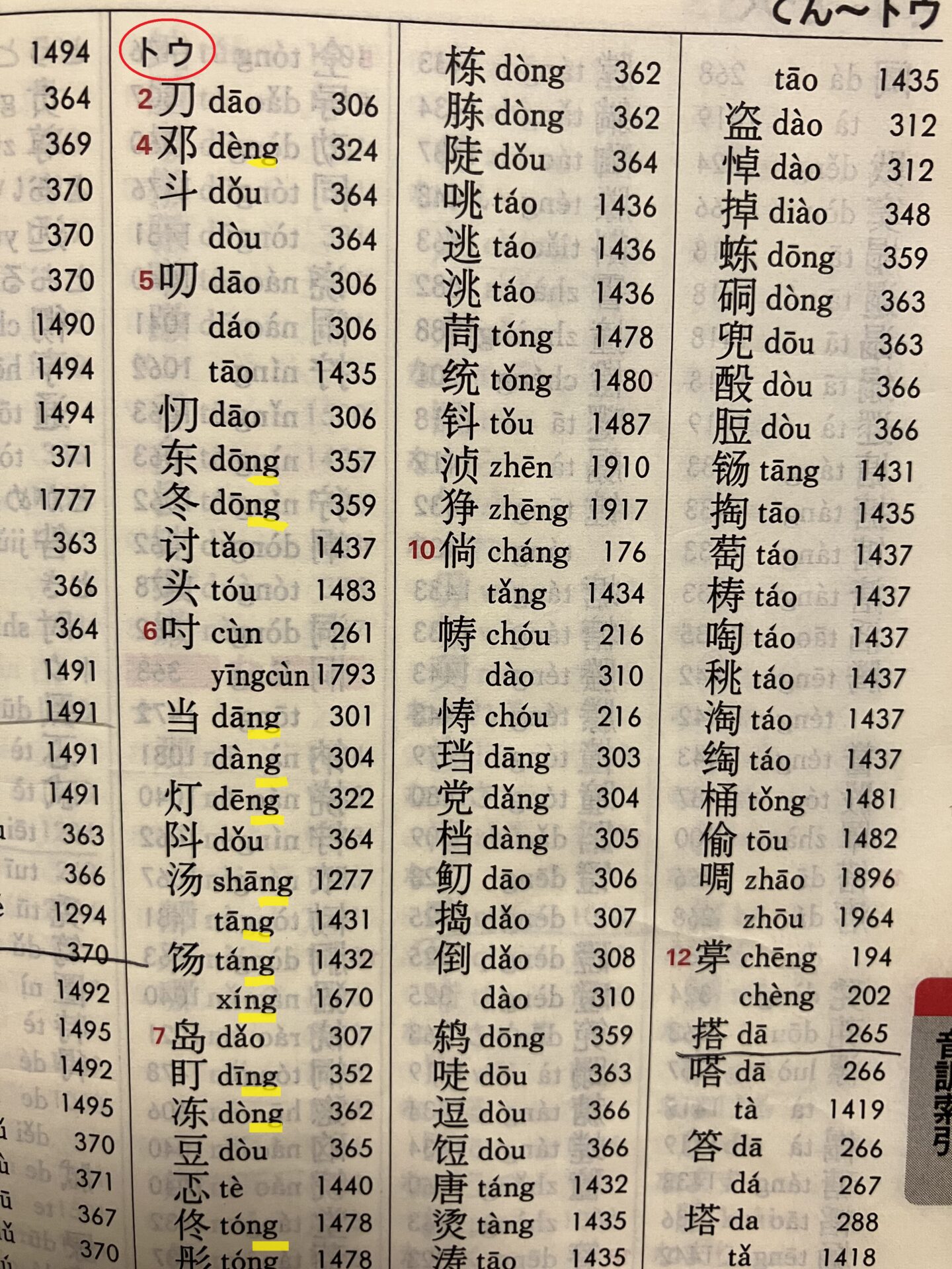 また以下の画像を見てのとおり、音読みが長音で終わる漢字のピンイン全てが后鼻音(-ng [ŋ])になるわけではありません。あくまでも、ある漢字のピンインが前鼻音と后鼻音のどちらか分からなくなった際の、判断材料のひとつとして参考にしてください。
