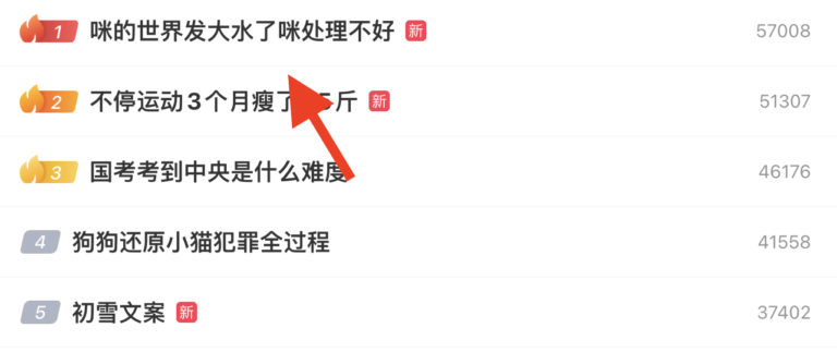 👉 本日の「微博热搜」でピックアップしたのは、“咪的世界发大水了咪处理不好 ”です!