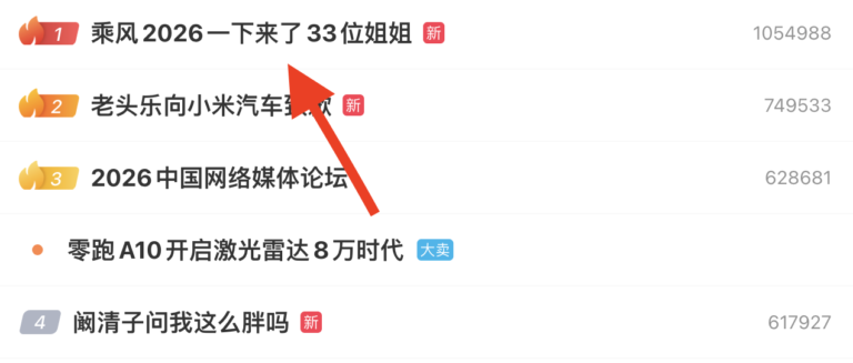 👉 本日の「微博热搜」でピックアップしたのは、“乘风2026一下来了33位姐姐”です!