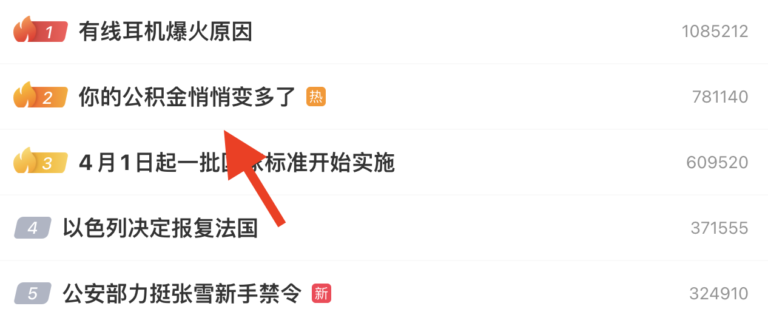 👉 本日の「微博热搜」でピックアップしたのは、“你的公积金悄悄变多了”です!