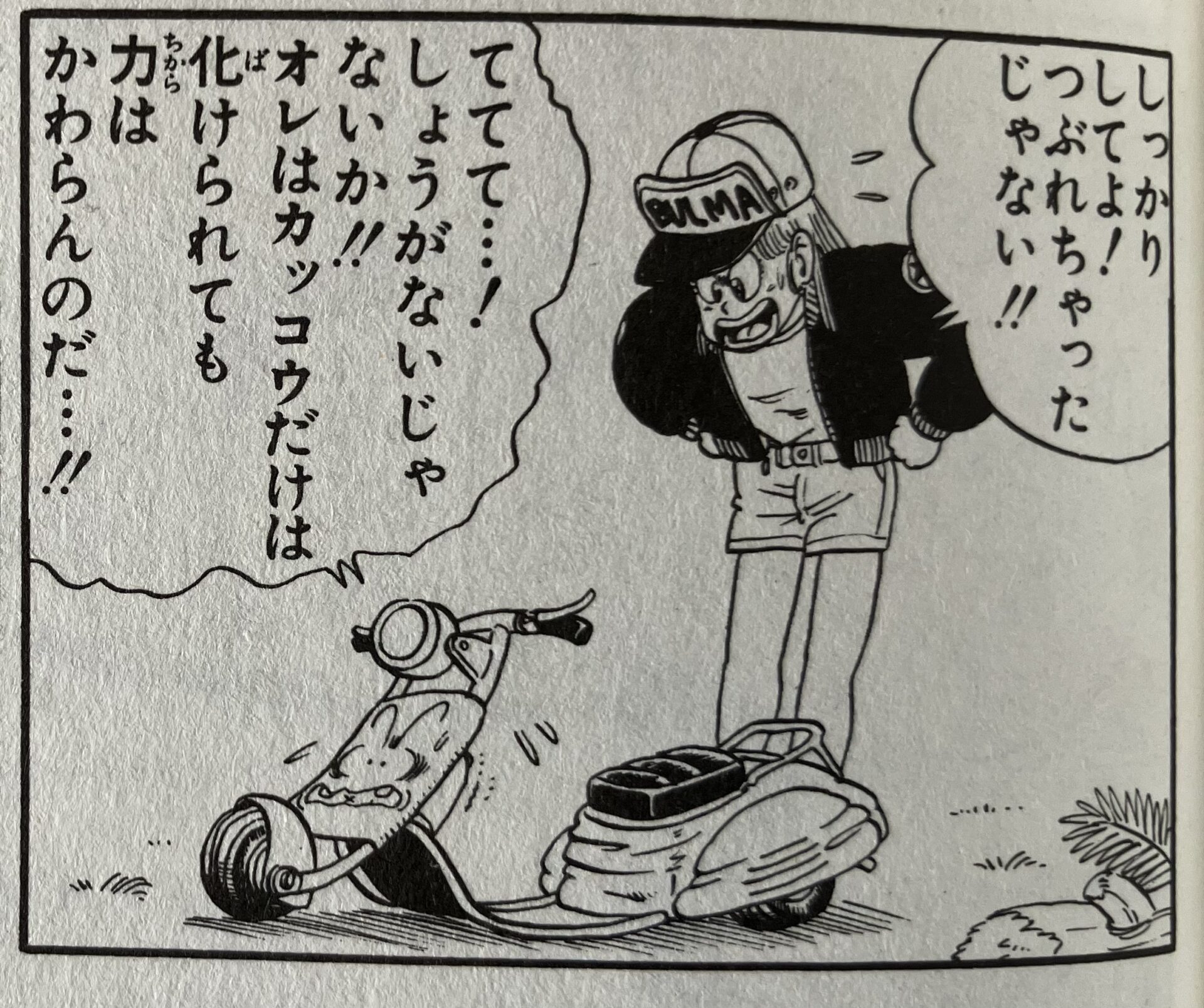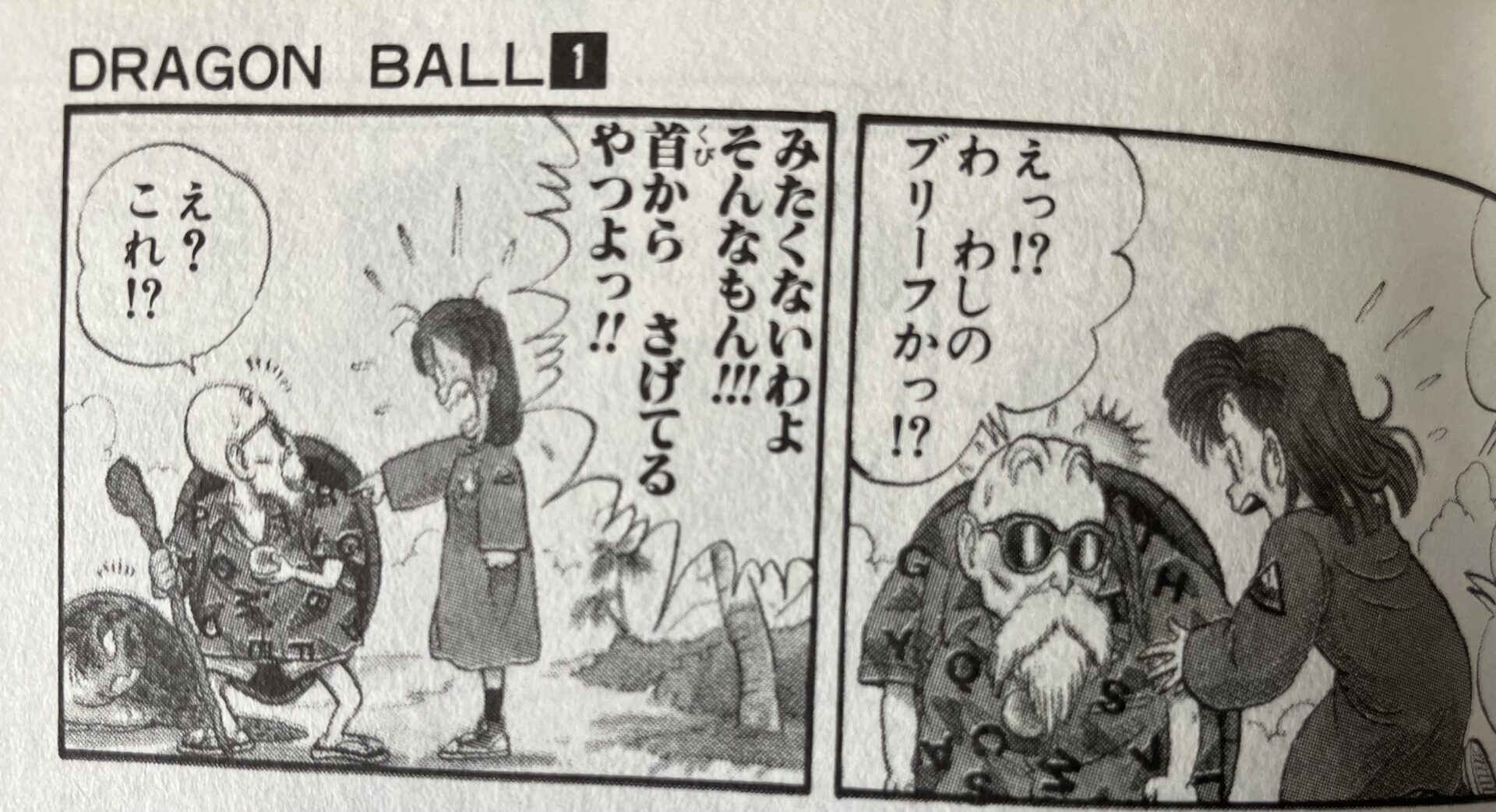 語気(強い感情)を表します。上のセリフの“才”に込められているのは「亀仙人(サングラスの老人)のブリーフなんて見たくない」という女性(ブルマ)の強い気持ちですね。